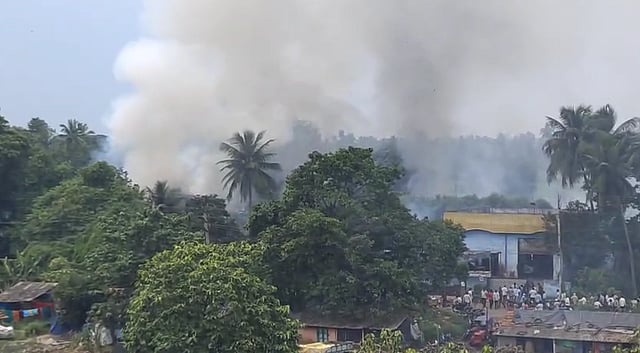 Rescue operations are ongoing, and fire personnel are working to bring the blaze under control.