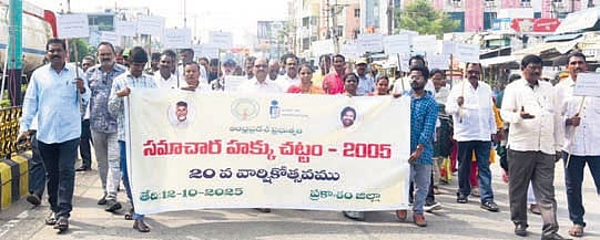 The district administration organised a public awareness rally from the Collectorate to Church Centre via Nellore Bus Stand on Sunday, marking the 20th anniversary of the RTI Act. The DRO, who attended as chief guest, presided over an awareness meeting held at the Collectorate.