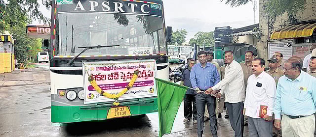 ONGOLE: Special tourist bus services to the scenic Pakala Beach were inaugurated on Sunday by Ongole Municipal Corporation Commissioner Dr K Venkateswara Rao and Ongole RTC Depot Manager Ghattamaneni Srinivasa Rao at the RTC complex.
