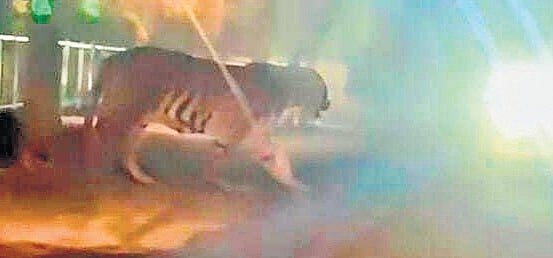 The Royal Bengal tiger is believed to be hungry as it had killed three cows about 48 hours earlier.