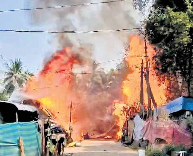 AMALAPURAM : A massive fire tore through All Castes Colony in Mamidikuduru mandal of Konaseema district, on Thursday, leaving residents terrified and forcing them to flee.
