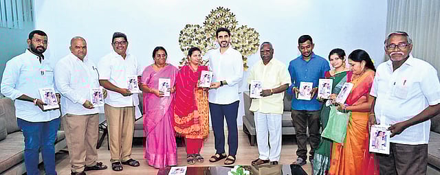 VIJAYAWADA: Minister for HRD and IT, Nara Lokesh, unveiled the novel “Cheyi Veedani Chelimi” authored by Chintakrindi Saijyothi, a visually impaired writer from Mangalagiri’s 26th ward.
