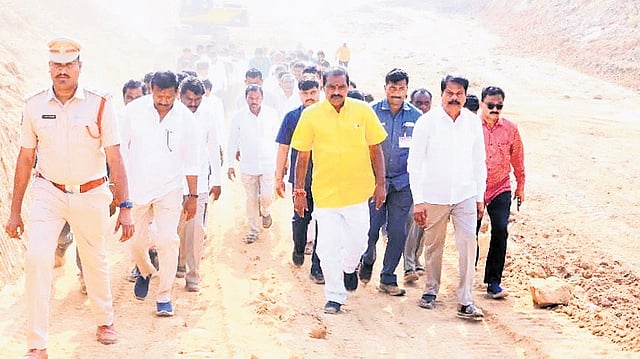 During inspection, he reviewed status of works with engineers and contract agency representatives. He said Chief Minister Nara Chandrababu Naidu would visit the project by the end of the month, lay the foundation stone and perform bhoomi pooja for Rs 456 crore feeder canal lining works and 5.3-km retaining wall concreting, and review progress.