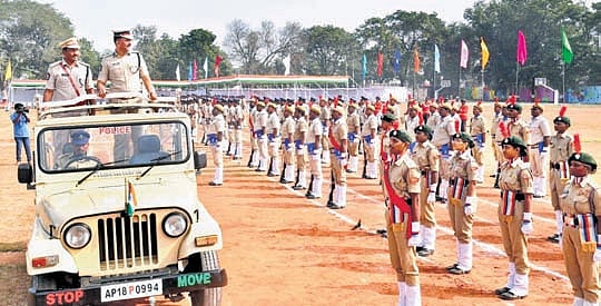 ONGOLE: Prakasam District Superintendent of Police V Harshavardhan Raju on Sunday inspected rehearsals for the 77th Republic Day celebrations at the police parade grounds.