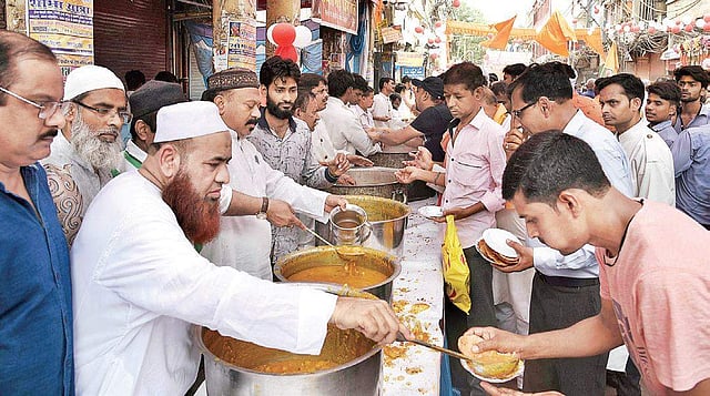 There was a welcome sign of communal amity as Muslim men from the Aman Committee served food during a ‘bhoj’ organised by the Vishwa Hindu Parishad on the occasion. However, a VHP leader struck a jarring note with an aggressive speech.