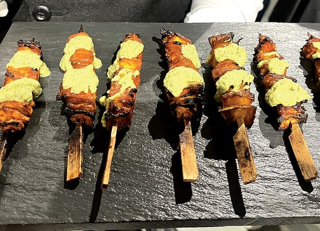 As Australia is famous for its seafood — tuna, crabs, lobster, scallops and more — we tasted the BBQ butter prawns next. This bite-sized bounty indulged our senses with the goodness of buttery prawns and sautéd onions with a gentle garnish of coriander, which made it a gourmet’s favourite. It gave stiff competition to the Fermented chilli glazed chicken skewer, which had a saucy and fiery flavour profile. We felt they could be best served with Indian bread, for which Allen shares an interest. “I love the variety of Indian breads — naans, rotis, kulchas, parathas and lots more. They are a dish in their own right,” he said.