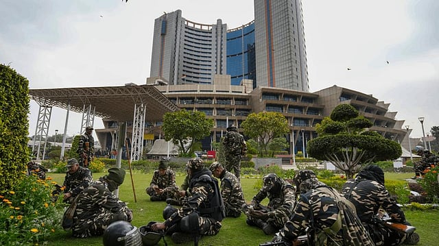 NEW DELHI: Delhi Police has bolstered security measures in and around the civic centre in the national capital as elections for 12 ward committees of the Municipal Corporation of Delhi (MCD) commence.