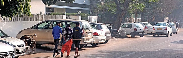 The draft parking policy suggests prohibition of parking on high-density mobility corridors — 50 metres from intersections on each arm of the road at major intersections; and 25 metres from minor intersections. It will be mandatory to get approval from BBMP for a building plan with parking space, wherein permission for parking only one car will be available for a 1,200 sqft house. The fee for approval for each additional car parking space per house will be twice that of the original parking space.