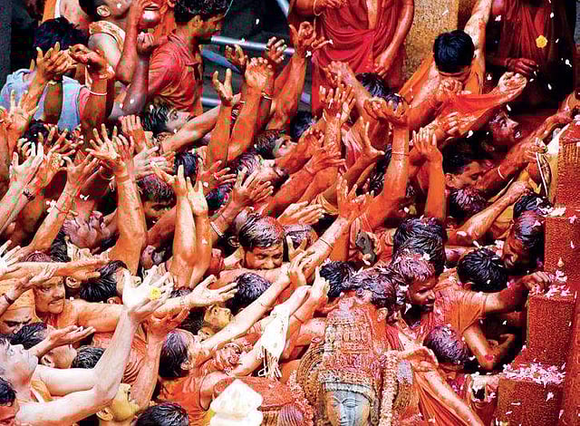 SHRAVANABELAGOLA: With just five days left for the first phase of anointing of Lord Bahubali to get over, the number of devotees in Shravanabelagola town is increasing. The Jain mutt has, meanwhile, announced that once the main anointing ceremony is completed on February 25, similar rituals will be held for the next six months, only on Sundays.As only 5,000 people can witness the anointing atop Vindhyagiri hills, it is not possible to accommodate more number of visitors. Hence the mutt has said that anointing ceremonies will be conducted on Sundays between March and August. Several Jain organisations across the state and India have approached the Jain mutt to book rituals that are conducted on Sundays.
