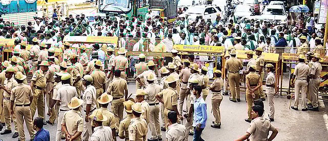 Traffic was thrown out of gear during the protest. Many commuters were stranded for more than an hour. Women farmers also lay down on the road to block the road before Freedom Park. Meanwhile, a group of farmers who came to meet the CM started raising slogans when they weren’t allowed to. They were taken into preventive custody and later released.