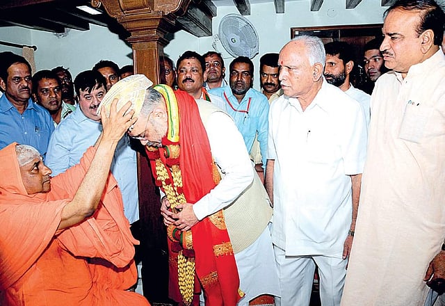MYSURU: Keen on drumming up support for the BJP in Old Mysuru region which is considered as bastion of the Congress and the JD(S), BJP national president Amit Shah called on Sri Shivarathri Deshikendra Swamiji of Suttur mutt on Friday and sought his blessings. BJP leaders were received with chanting of Vedas and Shah held closed-door talks with the seer. Shah’s visit to mutts has gained importance amid heated debates on separate religion status accorded to Lingayats.