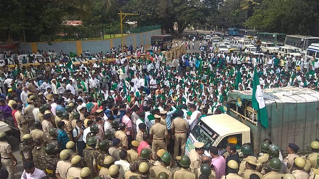 BENGALURU: The large scale protest by farmers in the city and elsewhere in the state was called off on Monday afternoon after the Government agreed to listen to their demands at a meeting called for by Chief Minister HD Kumaraswamy on Tuesday afternoon. The agitating farmers, who had threatened to march to the Vidhana Soudha if their demands were not met, were assured by co-operation minister Bandeppa Kashempur who went to Freedom park and spoke to them in the absence of Kumaraswamy.