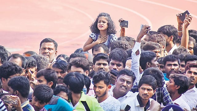 Ambareesh’s body was brought to the stadium at 8am from his JP Nagar residence. The number of fans arriving at the stadium kept swelling and continued till 3.45 pm, till his body was shifted to HAL Airport, to be airlifted by a helicopter to Mandya.
