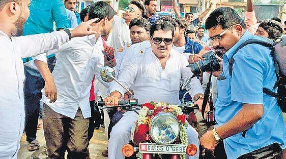 The minister hails from Bidanagere village in Kunigal taluk and had come to attend the wedding of his relative. From the Travellers Bungalow to the venue, he rode the bike, for about 1 km. He acted like a local guy to impress fans for cheap publicity, observed Anand Singh, a resident.