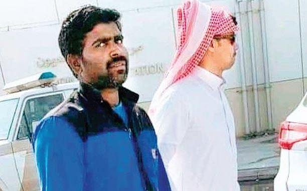 A picture of Harish Bangera being arrested by a Saudi official, is trending on social media