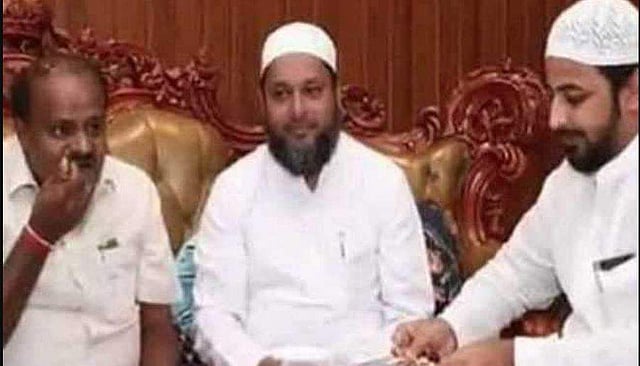 Along with the image, the party wrote, " First & foremost will @JanataDal_S mind explaining people of the Karnataka how did IMA fraudster escape from the state under the watch of @hd_kumaraswamy? BTW this picture of @hd_kumaraswamy having Biryani with IMA fraudster explains a lot about how the escape was planned."