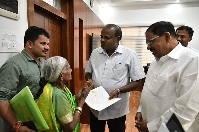 BENGALURU: Karnataka Chief Minister H D Kumaraswamy on Monday assured the legendary tree planter Saalumarada Thimmakka that the trees planted by her between Kudur and Hulikal village will not be axed for road widening. Thimmakka called on CM Kumaraswamy and his deputy G Parameshwara in Bengaluru on Monday, asking for the Bagepalli-Halaguru road widening project near Bengaluru to be called off.