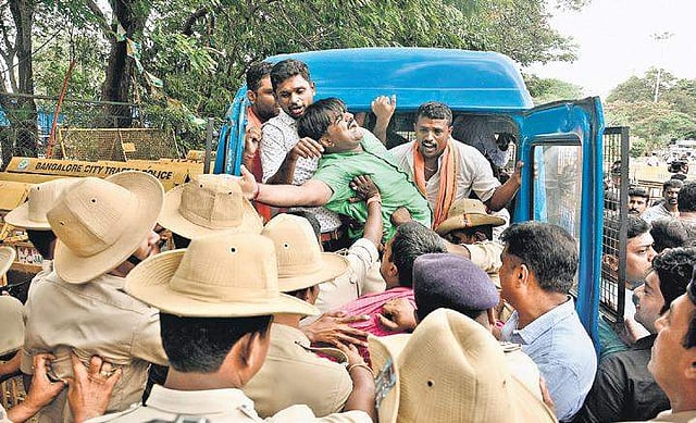 Sources said this is one way the coalition can give the issue a quiet burial without embarrassing themselves any further. When protestors started raising slogans outside Vidhana Soudha, they were arrested by police and later released. On Friday, the BJP will protest at Maurya Circle and will likely be joined by B S Yeddyurappa.