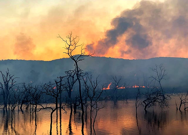 At Kudremukh National Park which is in Mudigere taluk of Chikkamagaluru district, forest fires are common in summer as the national park is situated at a high altitude comprising grasslands and shola forests. The wild fire was first seen in a small patch of Bagavathi forest area which began spreading rapidly engulfing trees, herbs, terrestrial mammals, birds, butterflies and reptiles.