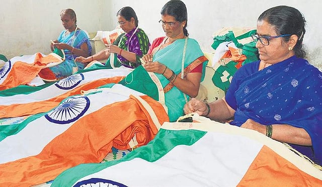 Meet the women behind the making of the Tricolour. For the last two months, the women employees of the country’s largest National Flag manufacturing unit in Hubballi worked in double shifts to meet the demand. This is the only authorised unit, located in Bengeri, Hubballi, in the country to produce the National Flag.