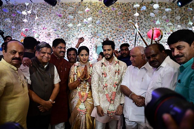 Nikhil's grandfather and former prime minister of India H. D. Deve Gowda attended the event along with several other politicians and influential people at the Taj West End.