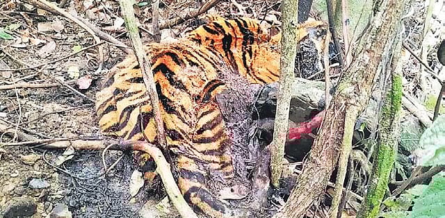 On Sunday, the carcass of a four-year-old Royal Bengal tiger was found in Gulavali village, sending the Forest officials into a tizzy. Gulaveli is deep inside the Mahadei Wildlife Sanctuary, which is part of a contiguous tiger corridor enjoining parts of Goa, Maharashtra and Karnataka. According to sources in the Forest Department, the tiger had died at least a week ago. Forest officials suspected that the tiger may have been poisoned by villagers for preying on cattle.