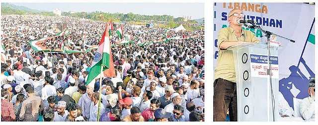 A sea of anti-CAA protesters gather at Adyar in Mangaluru on Wednesday; Activist-cum-author Harsh Mander addresses the rallyists, says CAA poses threat to country’s unity | Rajesh Shetty Ballalbagh