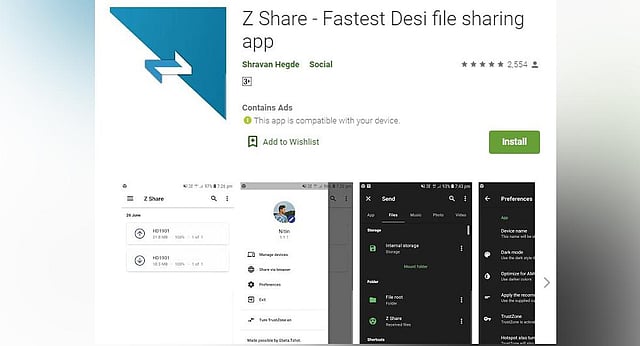 He says he developed the app within 15 days, and with the help of his cousin, who is into software, made his newly developed Z Share app available on Google Playstore.