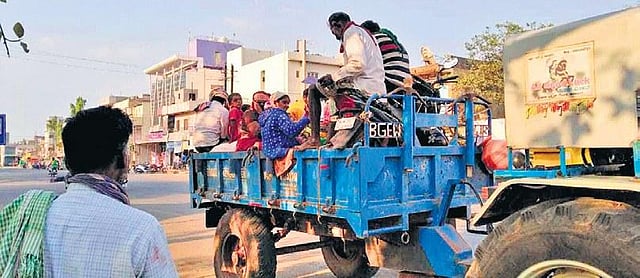 BELAGAVI: Despite the directions of the Union government, the exodus of migrant workers from Maharashtra and Goa has not stopped. The respective state governments had been categorically told to avoid migration of people till the nationwide lockdown ends. On Monday, hundreds of such migrant workers entered the district from Maharashtra border in tractors. All of them left for their villages in Vijayapura district and Athani taluk after they were not given shelter or food by the local authorities in Athani.