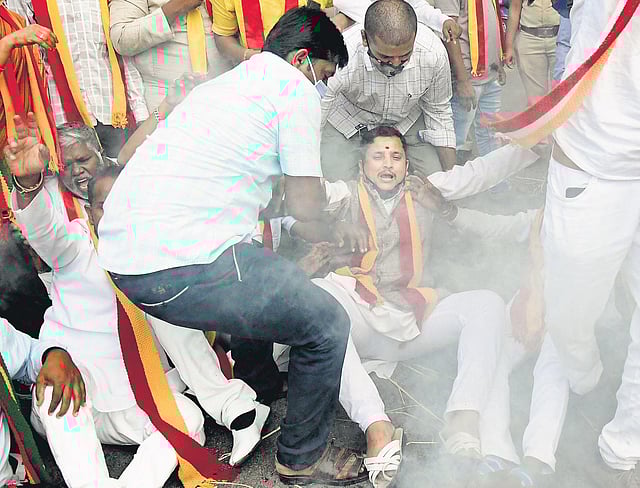 On Tuesday, they staged a protest at Mysuru Bank Circle in Bengaluru, and also protested in other parts of the state. The government has been accused of taking such a decision ahead of bypolls to Belagavi Lok Sabha seat and Basavakalyan assembly seat.