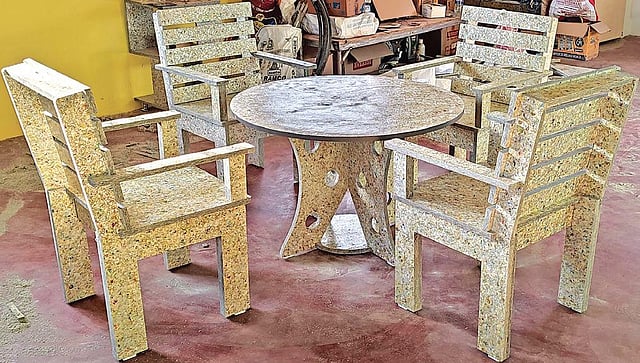 The team will soon launch ‘Eco Tuf’ and ‘Eco Tra’, an alternative to plywood. Plastic packets of snacks are difficult to recycle and are converted into attractive and beneficial products, Darshan said. Eco Tuf is a chipboard created from waste plastic bags (multi-layered plastics) which are waterproof. It is formaldehyde-free, waterproof, has a unique texture, is a heat insulator, is acoustic-proof with complete termite protection.
