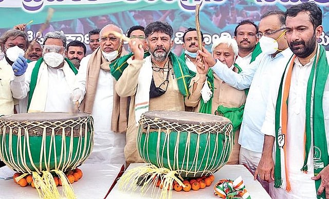 Amid heavy police deployment, the protesters marched from the City Railway Station to Freedom Park, led by Karnataka Pradesh Congress Committee president D K Shivakumar, Opposition Leader in the Legislative Assembly Siddaramaiah and other leaders almost entirely occupying the Anand Rao Circle flyover at one point.