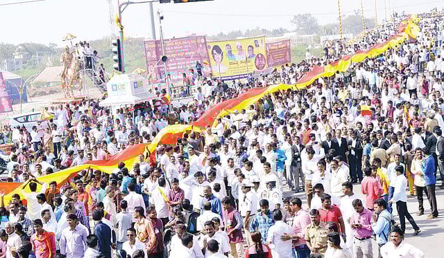BELAGAVI: Tension prevailed in Belagavi on Thursday as hundreds of Shiv Sena workers, armed with the saffron flags, tried to enter the district through the Karnataka border near Shinoli village. This led to a confrontation between the Shiv Sena activists and the Belagavi police. The workers were on their way to participate in the protest of Maharashtra Ekikaran Samiti. However, the city police had not given them permission to take out a rally.