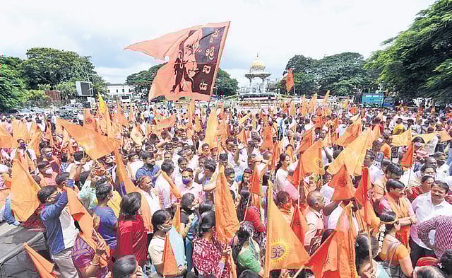 MYSURU: BJP MLA SA Ramadass and other party leaders from the region faced a major embarrassment after Hindu Jagaran Vedike members— who gathered in front of the Kote Anjaneyaswamy temple to protest against the demolition of Mahadevamma temple at a village in Nanjangud— raised slogans against the State Government and its leaders.