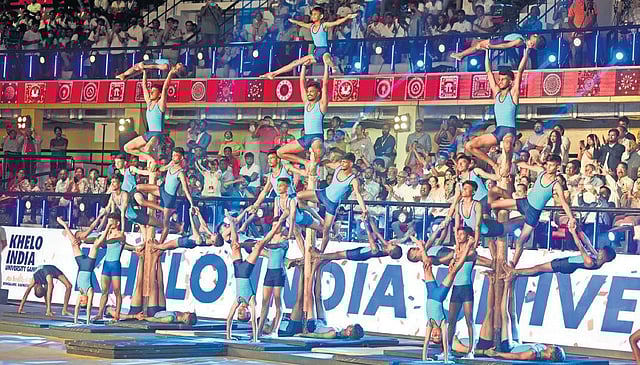 Bengaluru: M Venkaiah Naidu, Vice-President, declared the Khelo India University Games open at the Sree Kanteerava Indoor Stadium here on Sunday. The audience were also treated to some edge-of-the-seat performances by Mallakhamb athletes, who met with a standing ovation in the opening ceremony. Besides, cultural programmes and traditional folk dances kept everyone entertained.