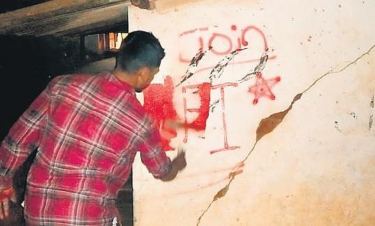 The incident came to light only on Sunday. Police officers, who swung into action, found graffiti on a compound wall near the old petrol bunk, on electric poles on Bhovi Colony Road, and other areas of Shiralakoppa. Graffiti were also seen on the walls of houses near Bilal Masjid and Farooq Masjid. Police have removed the graffiti.