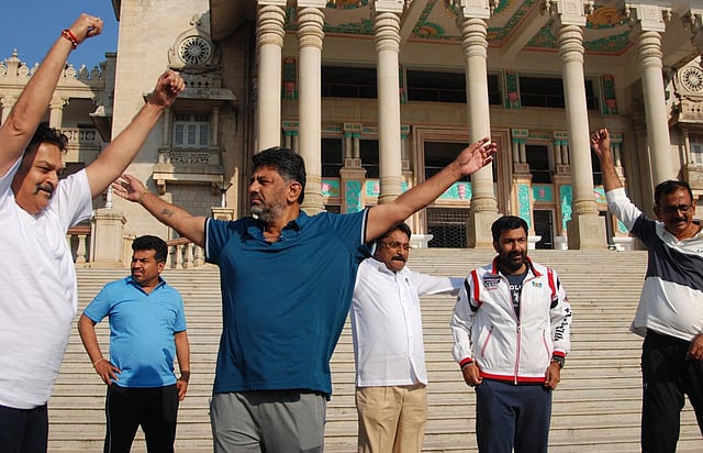 BENGALURU: With Congress legislators firm on continuing with their day and night dharna, demanding RDPR minister K S Eshwarappa’s dismissal over the ‘bhagwa’ flag issue in both Houses on Monday, the Assembly Speaker and Council Chairman are likely to adjourn the session after passing certain bills.