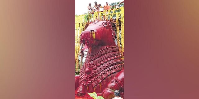 As part of the rituals, the monolithic statue was cleaned and the priests anointed the statue with 38 different ingredients. The Nandhi statue which is the third biggest in the country is believed to have been installed by Mysuru ruler Dodda Devaraja Wadiyar during the 17th century.