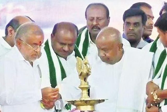 Fomer PM HD Deve Gowda lights the lamp during an event in Mulbagal | Express