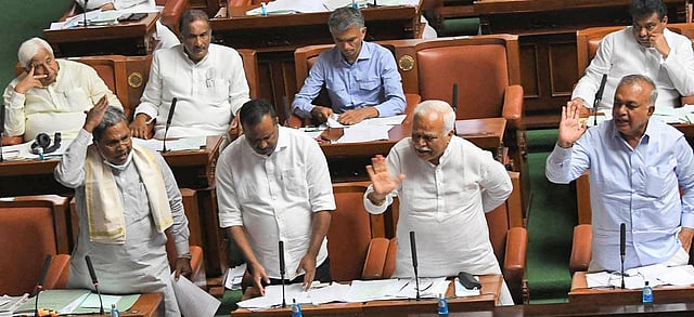 BENGALURU: The Assembly on Thursday witnessed chaotic scenes as both the ruling BJP and Opposition Congress entered into a war of words over the alleged police sub-inspector (PSI) recruitment scam. While the Congress members demanded that Speaker Vishweshwar Hegde Kageri allow a discussion on the PSI scam, the ruling party members sought a debate on all recruitment scams, including those that happened during the Congress regime.