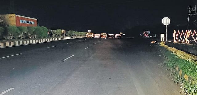 Police have also banned the entry of the general public near the spot. The vehicle got stuck when the driver was trying to cross it to enter the service road towards Dharwad. The Dharwad SP said soon after the incident the police and other teams rushed to the spot. Vehicles are coming from Belagavi are being diverted through Bailhongal Road and those heading towards Belagavi are being sent through other interior roads. Heavy vehicles are being stopped until the situation comes under control.