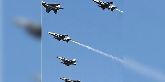 For instance, four types of fighter aircraft — MiG 29, Rafale, Jaguar and Mirage 2000 — flew in the Arjun formation, while a fleet of LCAs roared across in the Arrow formation. The dance in the air was also interspersed by graceful glides from IAF’s AEW&CS Embraer, the C-17 Globemaster, and the Indian Navy’s P8i multi-mission patrol aircraft.