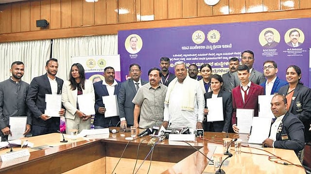 BENGALURU: Chief Minister Siddaramaiah on Sunday distributed government job offer letters to 12 sportspersons from the state who had won medals in the Olympics, Paralympics, Asian Games, Para Asian Games and Commonwealth Games.