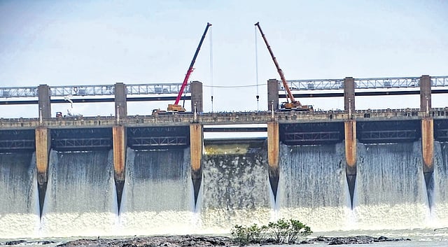 HOSAPETE : The damaged crest gate of the Pampa Sagar dam on the Tungabhadra river in Koppal district, was finally fixed, one week after its chain snapped. The team of experts successfully installed all five stoplogs at the broken crest gate no 19 of the Tungabhadra Dam after two days of continuous efforts.