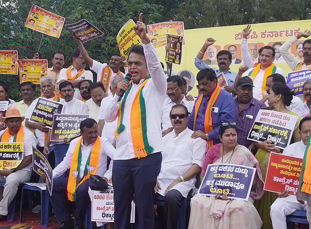 BENGALURU: Opposition BJP leaders on Thursday staged protests across the state, demanding Chief Minister Siddaramaiah’s resignation over the MUDA site allotment case, and action against Congress leaders who made objectionable comments against Governor Thaawar Chand Gehlot.