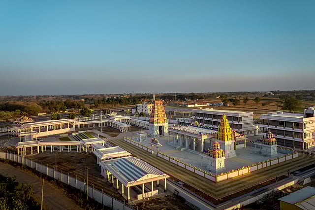 Spread across 6.5 acres, the complex has been developed at Palikoppa village, 25 km from Hubballi, abutting National Highway-4, by Aradhana Trust, until now managed by the family of VRL Logistics chairman and former MP Vijay Sankeshwar. However, with the temple’s consecration, the administration of the complex has been handed over to Sri Jagadguru Shankaracharya Mahasamsthanam, Dakshinamnaya Sri Sharda Peetham, Sringeri.