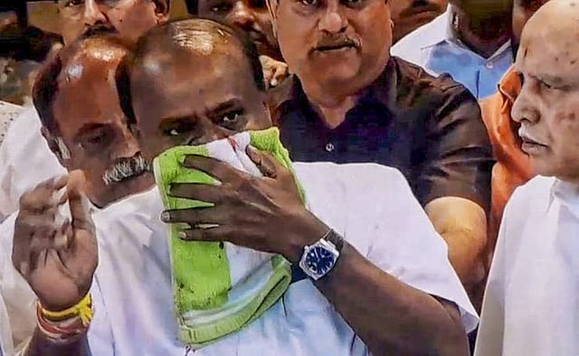 He was talking to reporters after a BJP-JDS coordination committee meeting, blood started tickling down from Kumaraswamy’s nose. He was rushed to Apollo Hospital in Jayanagar. Hospital sources said the bleeding was because of medications that Kumaraswamy is taking for his health conditions. He was stable, they added.
