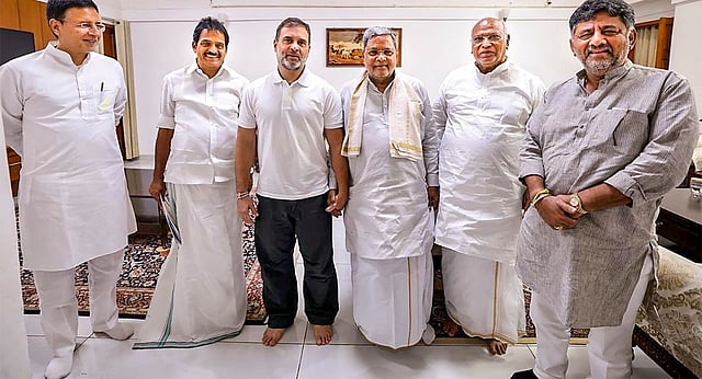 AICC president Mallikarjun Kharge held meetings with Siddaramaiah and Shivakumar along with Leader of Opposition in the Lok Sabha Rahul Gandhi and party leaders KC Venugopal and Surjewala at his residence in New Delhi.