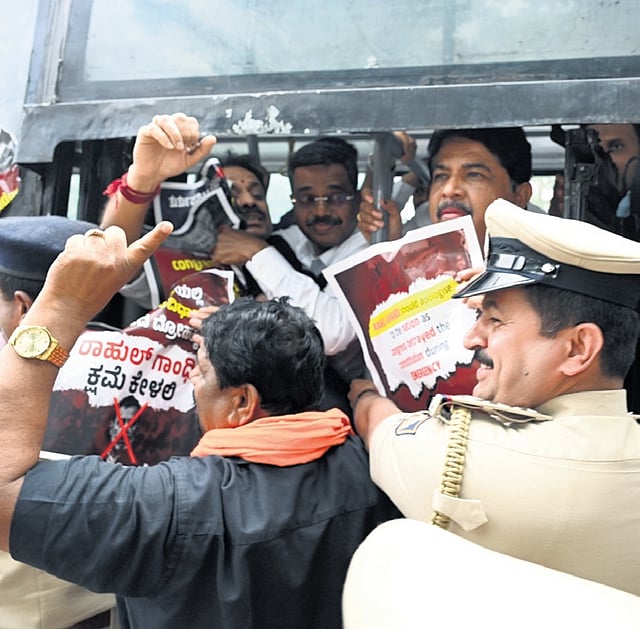 The Leader of the Opposition in the Assembly, R Ashoka, who took part in the protest, called the Congress anti-national and anti-Constitutional.