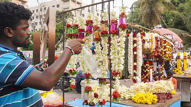 Not just flowers, neem leaves, and tulsi, too, are drying up in less than two hours, Gayathri, a vendor in Malleswaram said and pointed out that due to the non-functional RO unit throughout the day, there is no water to keep them fresh. The entire cycle of vendors purchasing from us to sell outside temples has almost come to a halt. All our earnings are spent on transportation, there is nothing left for us.